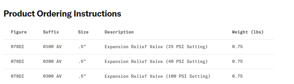 .75” EXPANSION RELIEF VALVE - 25, 40, OR 100 PSI Brand : Morrison Category : General Maintenance Description : Document :