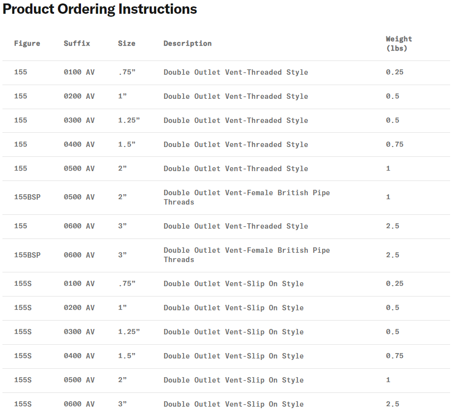 Valves, Vents & Drop Tubes