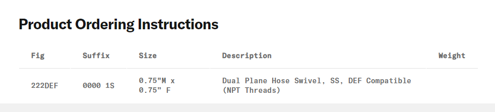 Swivel, Inline With NPT Threads, Def Compatible Brand : Morrison Category : General Maintenance Description : Document :